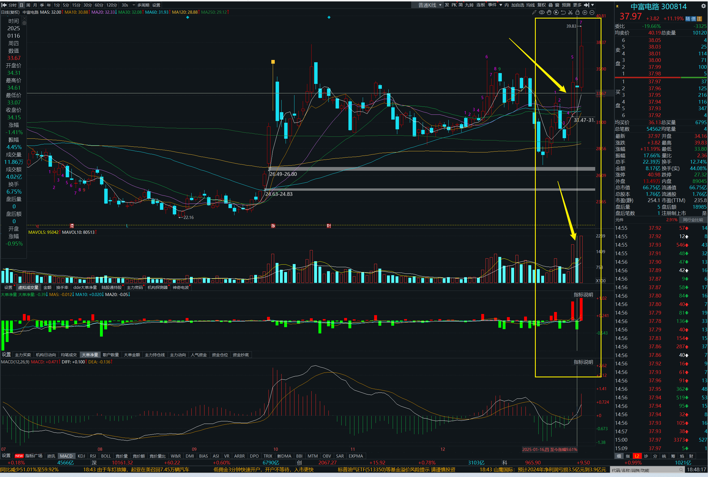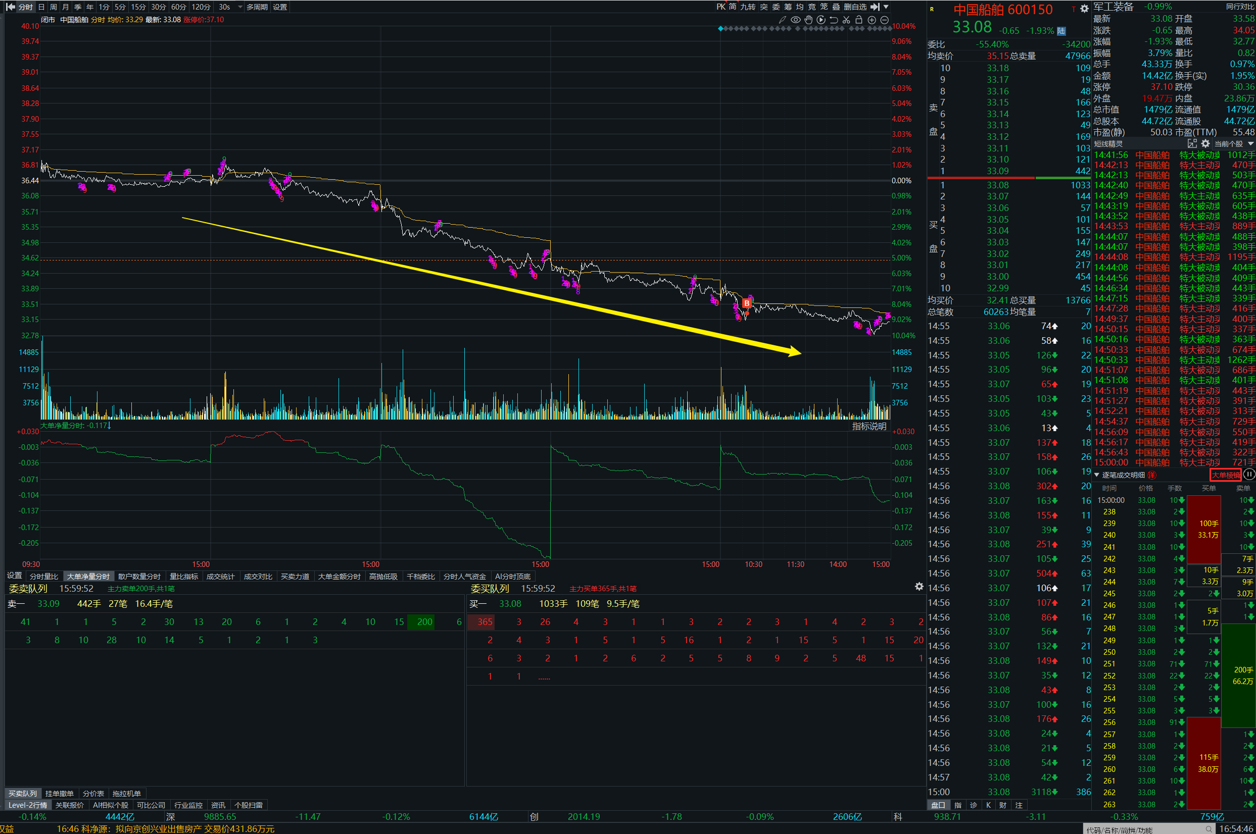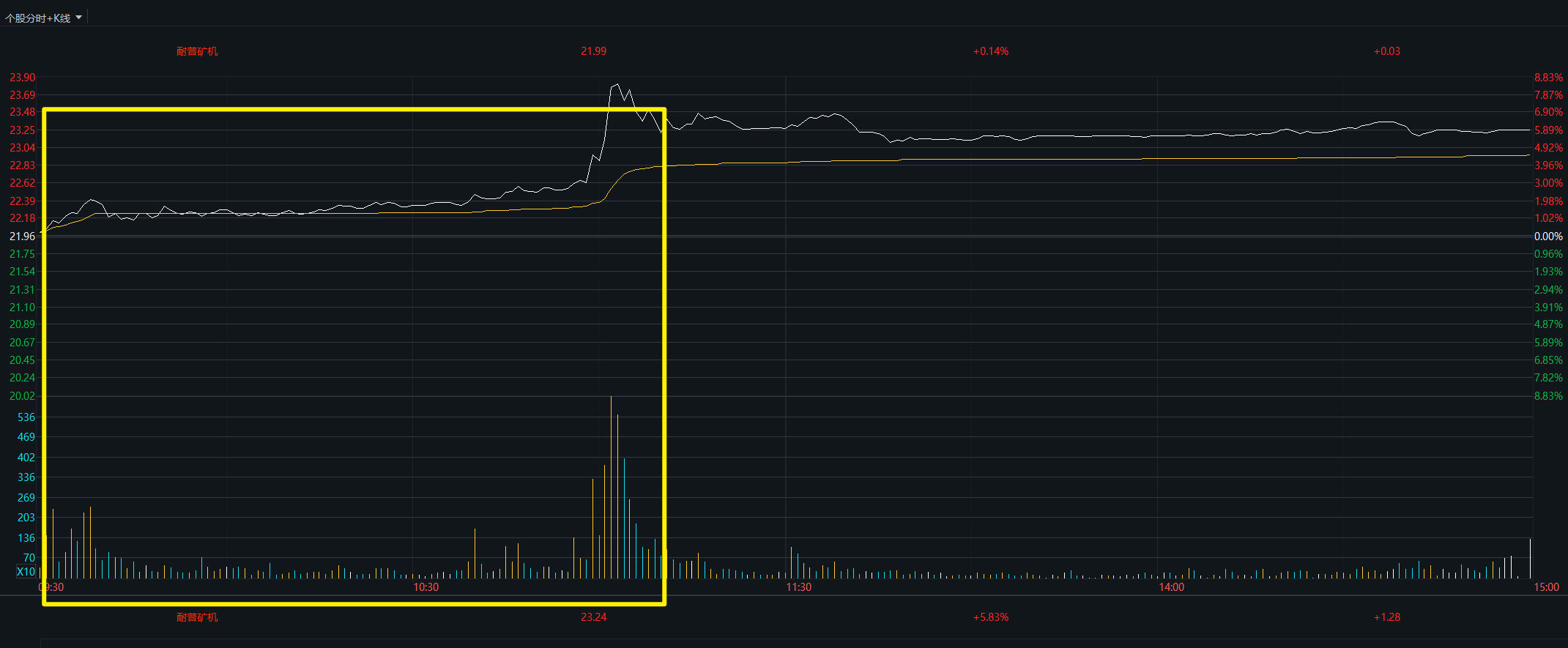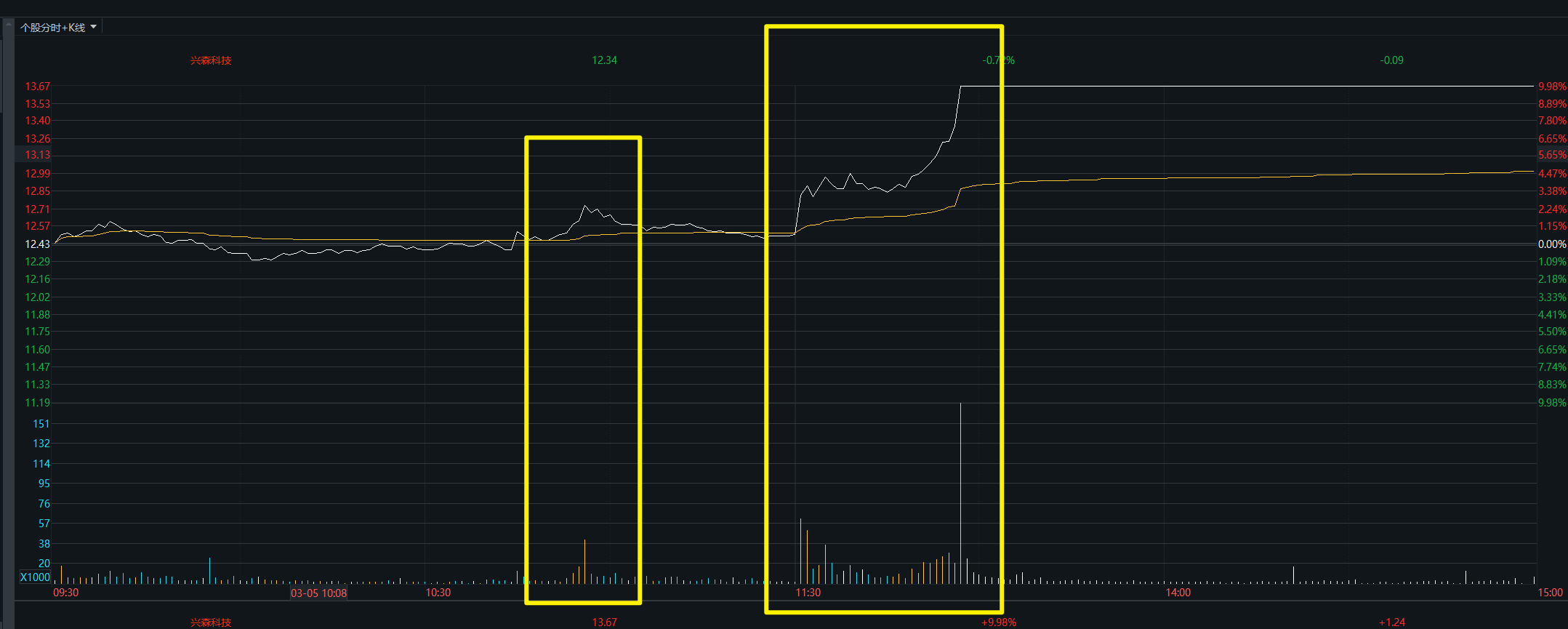 时分图上情绪回暖的重要标志是股价能快速回到黄线上方运行,并伴随资金流入。如果股价拉升回来后资金持续流出,看作诱多信号。