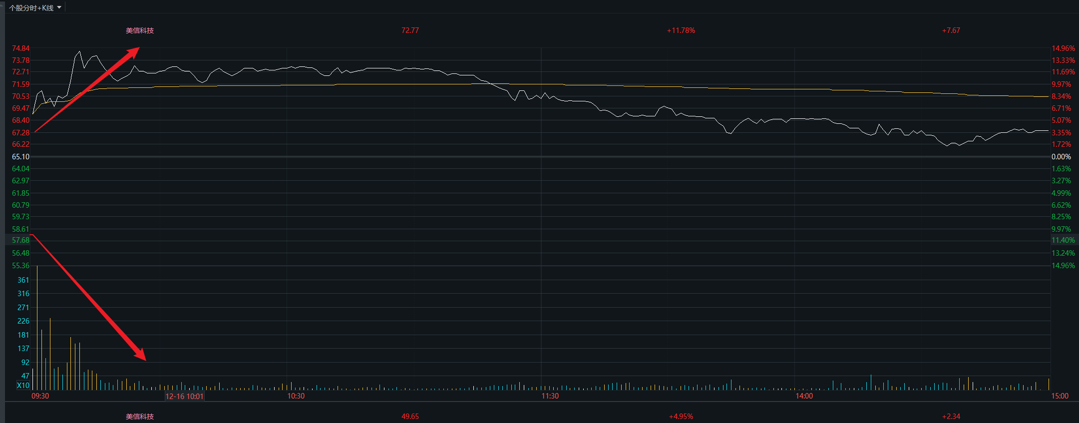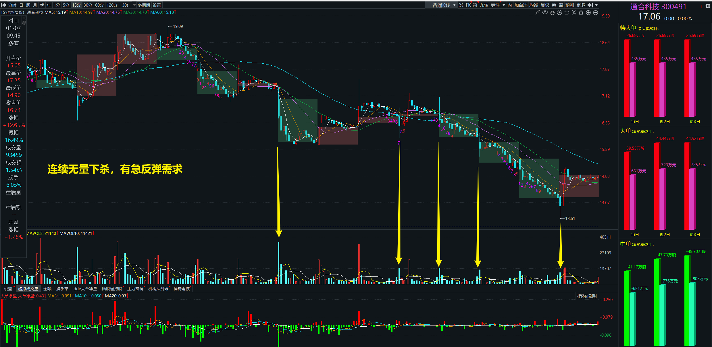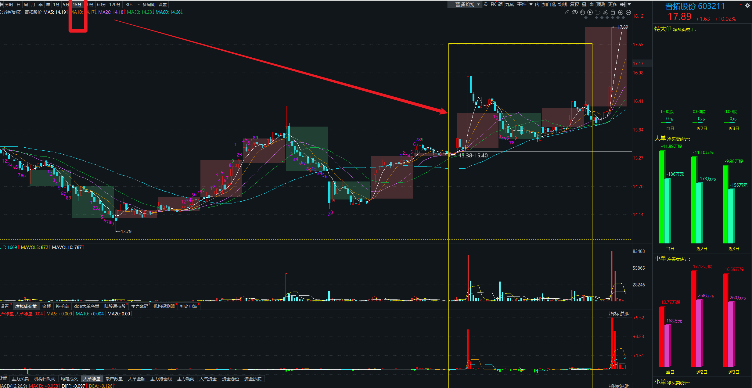 放量拉升后极致缩量回调,以15分钟为参考单位