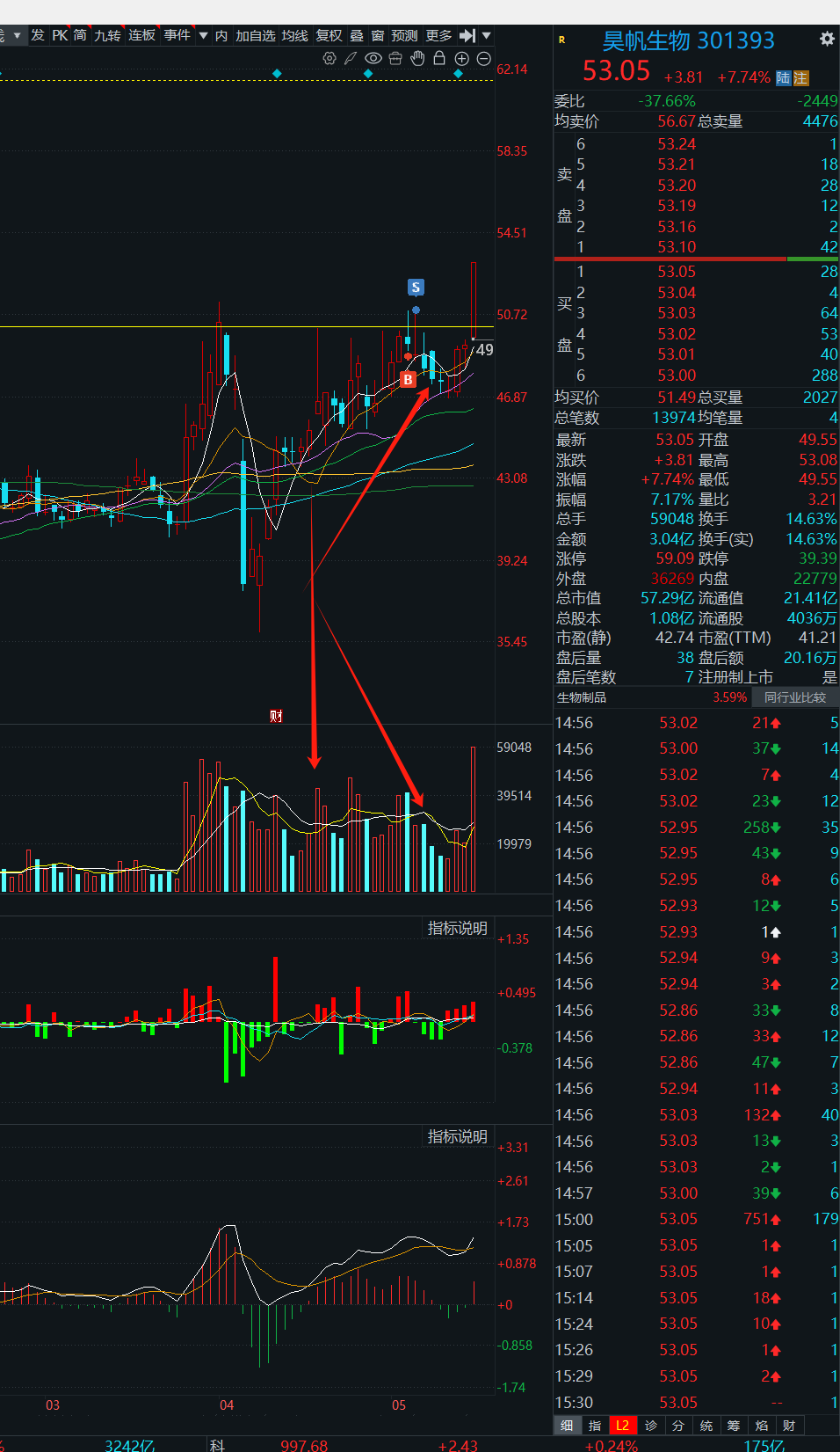 卖盘枯竭信号,配合指数确认反弹信号,个股上跌不下去,主要在0至-2的位置上。