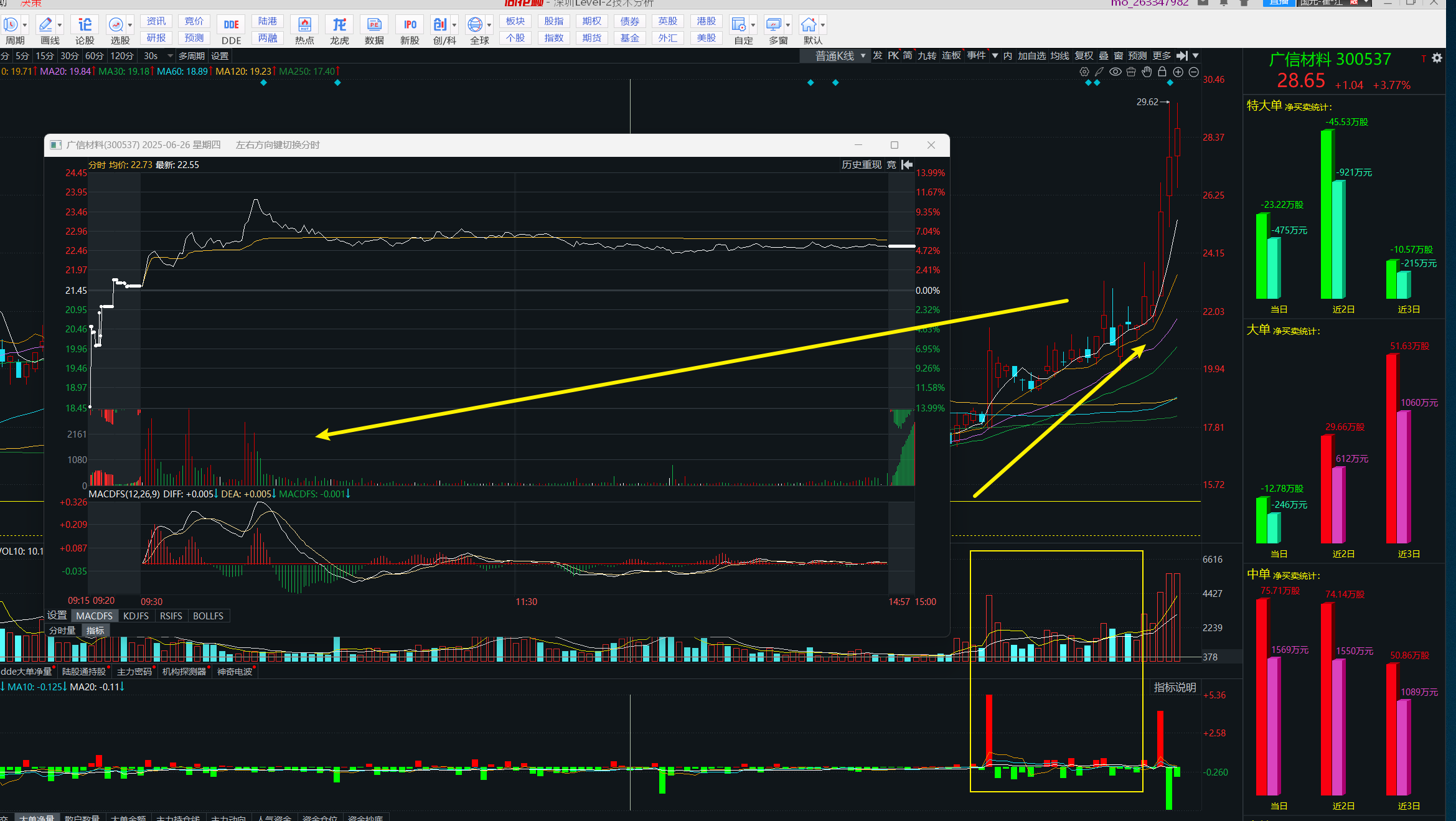 假突破识别,拉升后大单资金撤离(特别适用只拉不封板的场景)
