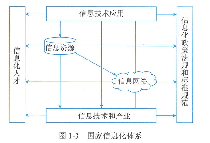 7、国家信息化体系包括信息技术应用、信息 资源、信息网络、信息技术和产业、信息化人才、信息化政策法规和标准规范6个要素,这6 个要素的关系构成了一个有机的整体。