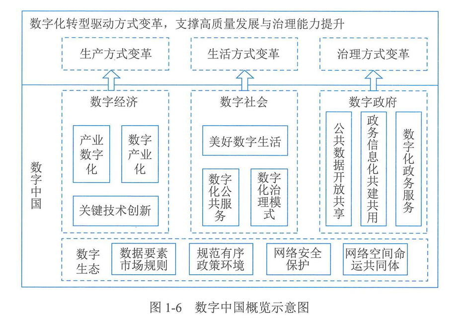 数字中国是新时代国家信息化发展的新战略,“迎接数字时代,激活数据要素潜能,推进网络强国建设,加快建设数字经济、数字社会、数字政府,以数字化转型整体驱动生产方式、生活方 式和治理方式变革”成为了新时代我国信息化发展的主旋律。