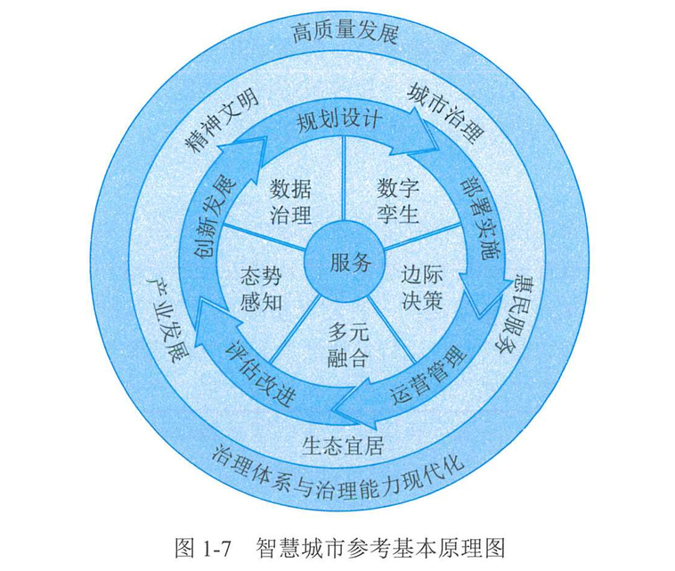 智慧城市关注焦点从使用信 息化应用提高工作效率,转为通过数字关系计算提高决策效能;从局部信息技术应用,转为广泛 互联互通环境下的综合应用创新;从强调管理体系和规范性,转为突出主动服务与精准施策等。以及以数字产业化和产业数字化为主旋律的数字经济高 速发展,智慧城市基本原理表现为: