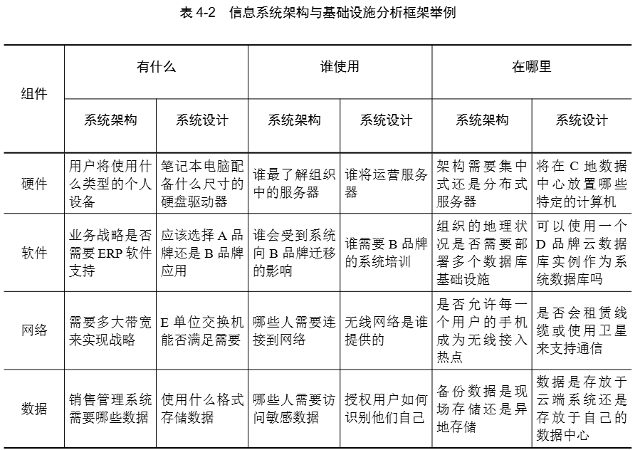 - 开展信息系统设计和实施,首先需要将业务需求转换为信息系统架构,信息系统架构为将组织业务战略转换为信息系统的计划提供了蓝图。