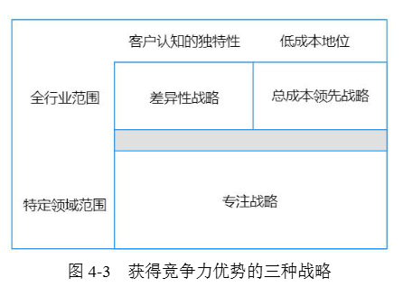 描述业务战略的经典框架是竞争力优势模型,如图4-3所示。